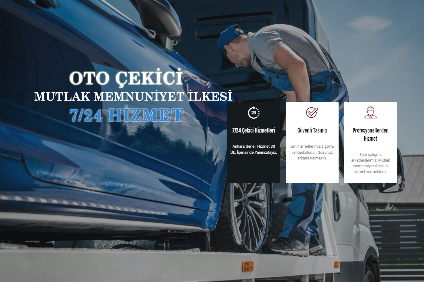 Ankara Çekici Hizmeti, ultra profesyonel ekibi ve donanımlı araçları ile 7/24 oto kurtarma hizmeti sunmaktadır. Müşteri memnuniyetine odaklanarak, en yeni araçları ile sizlere çekici hizmeti vermektedir.